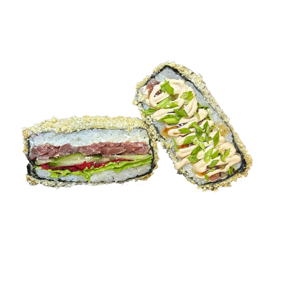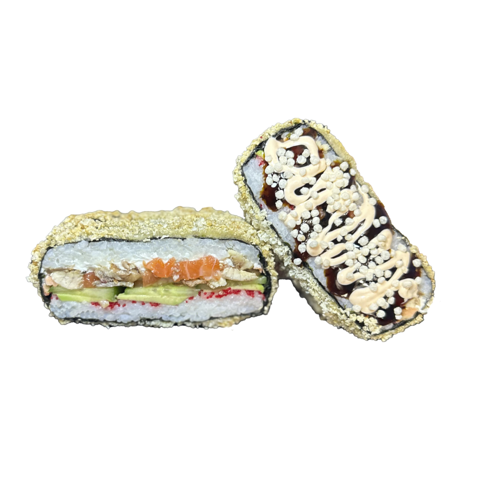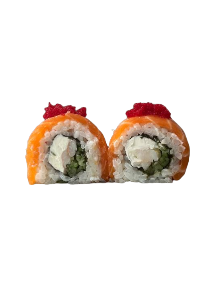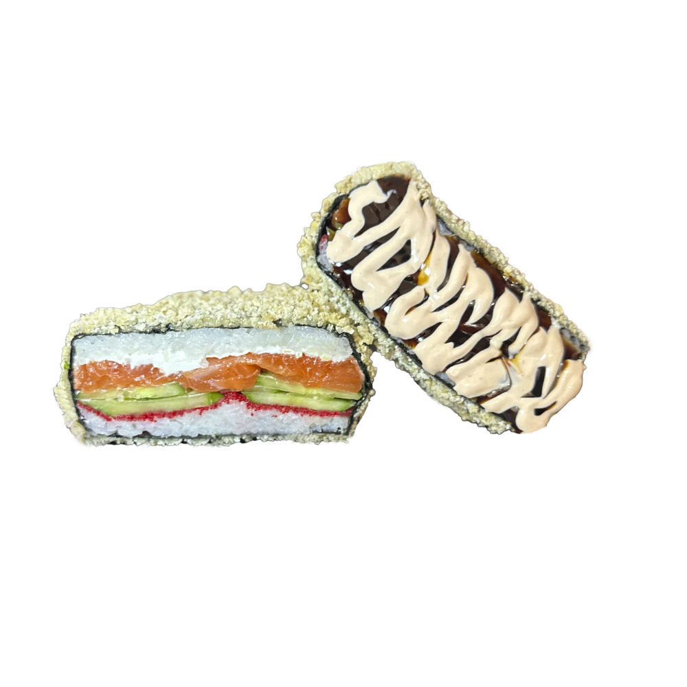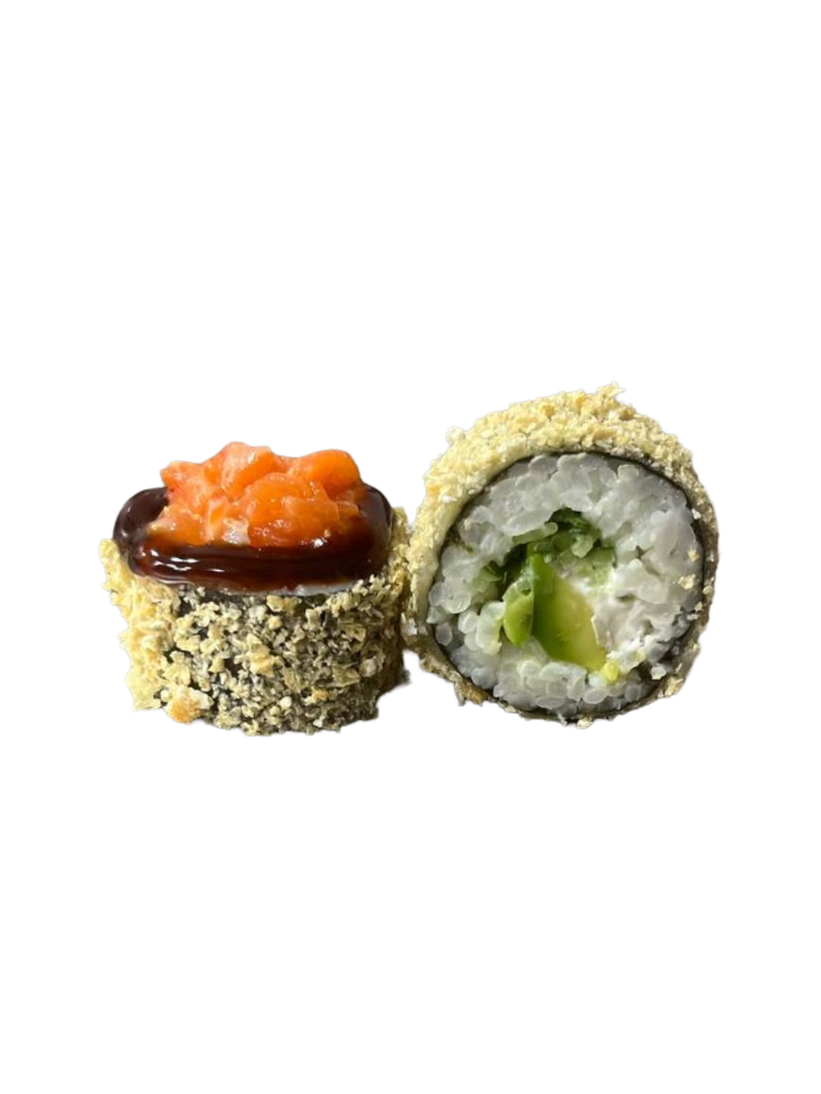 - Каліфорнія в кунжуті зі смаженим лососем та сиром філадельфія