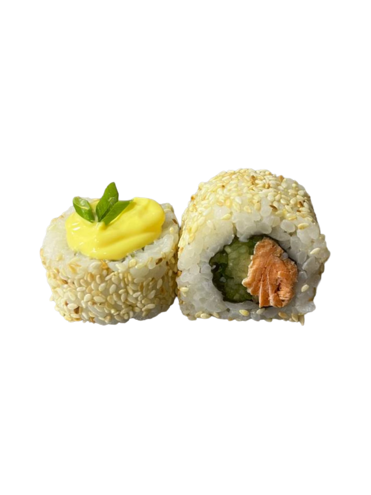 - Каліфорнія в кунжуті з лососем та японським майонезом